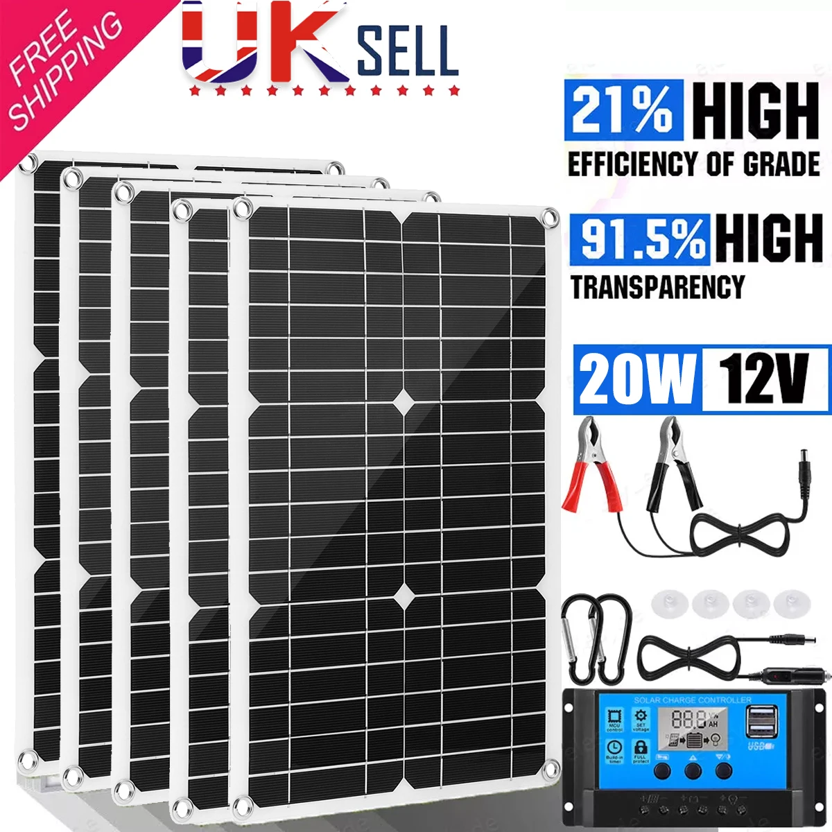 20W Watt Solar Panel Kit For Battery Maintainer & Trickle Charging With 100A Solar Charge Controller, It Can Intelligently Charge Various 12V Batteries, And Provide All-Round Protection For Batteries Such As Overcharge, Overdischarge, Overvoltage, Overcurrent, Short Circuit, And Reverse Connection.