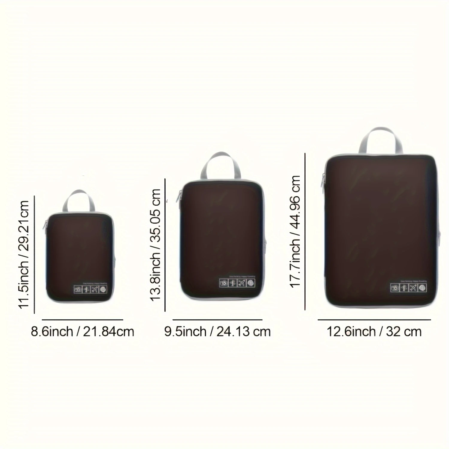 – Stay organized on your travels with this 3-Piece Travel Organizer Set, featuring compression packing cubes and nylon dustproof bags with handle design for easy carrying. Perfect for luggage storage and suitcase organization, these space-saving bags are essential travel accessories for efficient packing and storage.