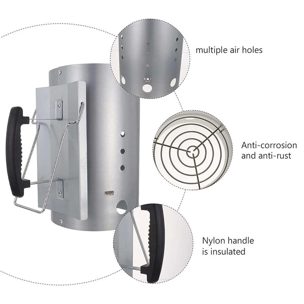 1. Efficient Heat Production: Designed for quick and effective heat generation, this charcoal grill chimney starter rapidly produces hot coals, making it ideal for cooking and grilling. Its efficient design ensures you spend less time waiting and more time enjoying your meal.