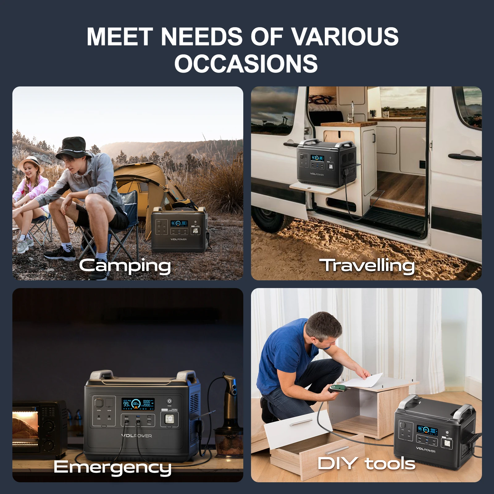 【GREEN ENERGY SOLUTIONS】Harvesting green energy from nature and storing it in a VDL power station is realized! VDL Power station is a great power solutions for emergency, outage and energy shortage. Widely use for home, kitchen, outdoor, camping, fishing, RV and etc. It is great helpful to cut down your electricity bills.